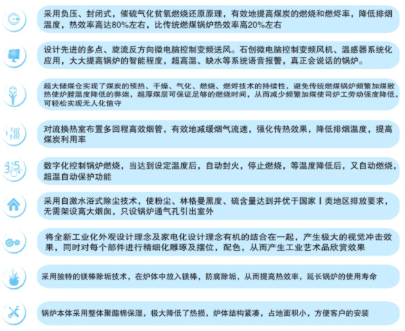 在正常運(yùn)行過程中,溫度設(shè)定后,可完全通過微電腦系統(tǒng)來自動(dòng)控制鍋爐的運(yùn)行,無需專人看管,科學(xué)合理的儲(chǔ)煤倉,一次加煤可連續(xù)燃燒十多小時(shí),大大降低了勞動(dòng)強(qiáng)度。
